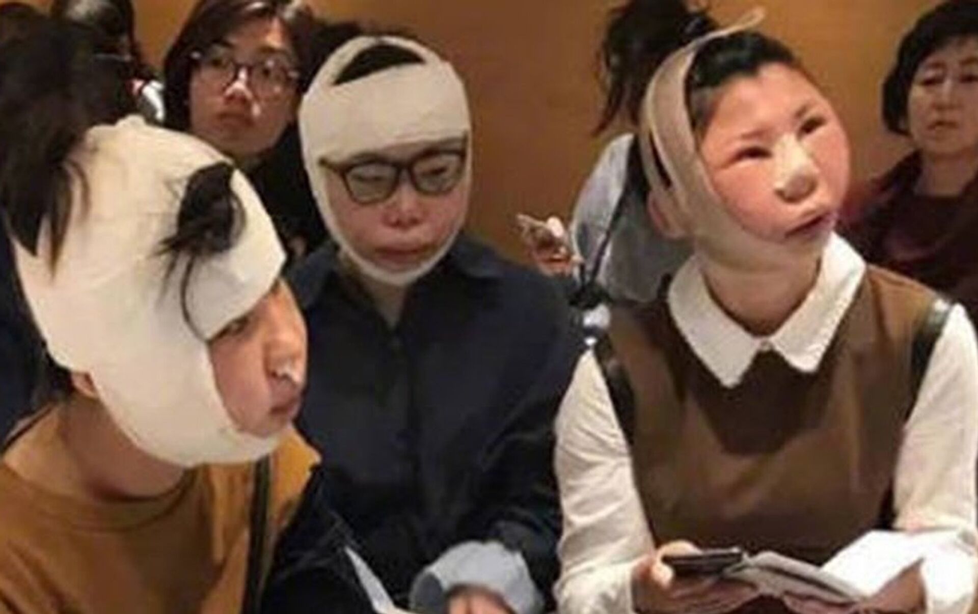 Фото, на котором три китаянки сидят в южнокорейском аэропорту — растерянные и с паспортами и билетами в руках, разлетелось по интернету. У девушек сильные отеки после пластических операций на глазах и носах.
