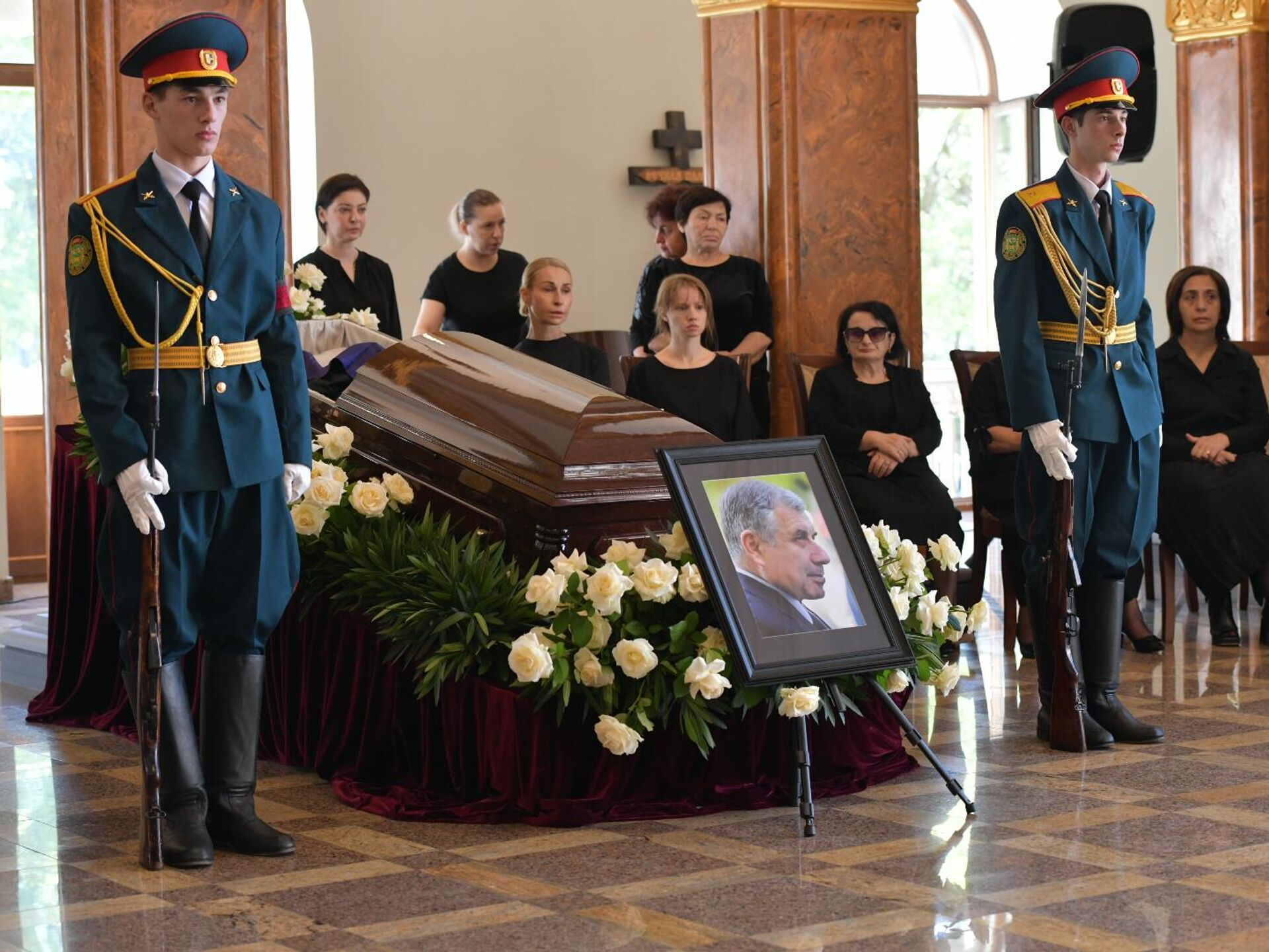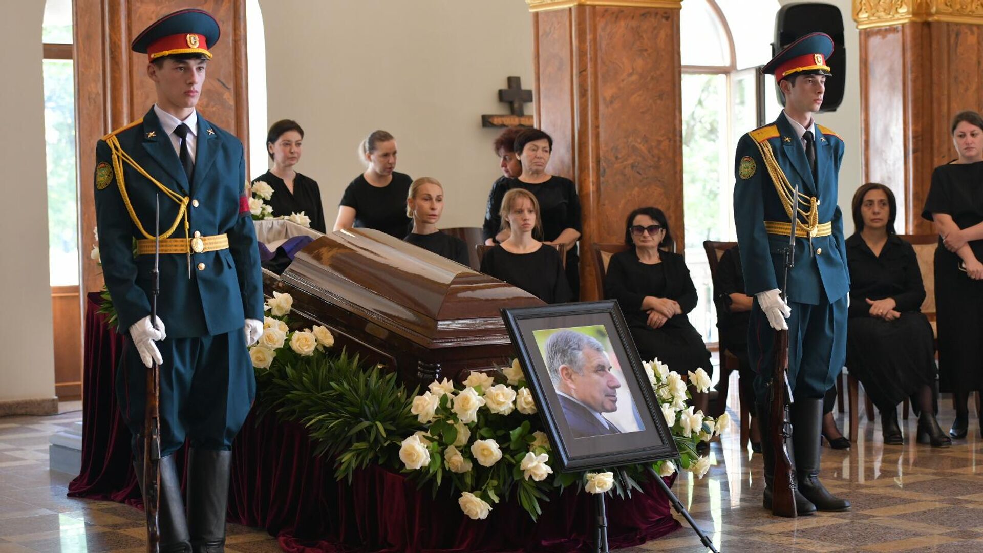 Станиславом Лакоба. Панихида проходит в здании Абхазского драматического театра имени Самсона Чанба.