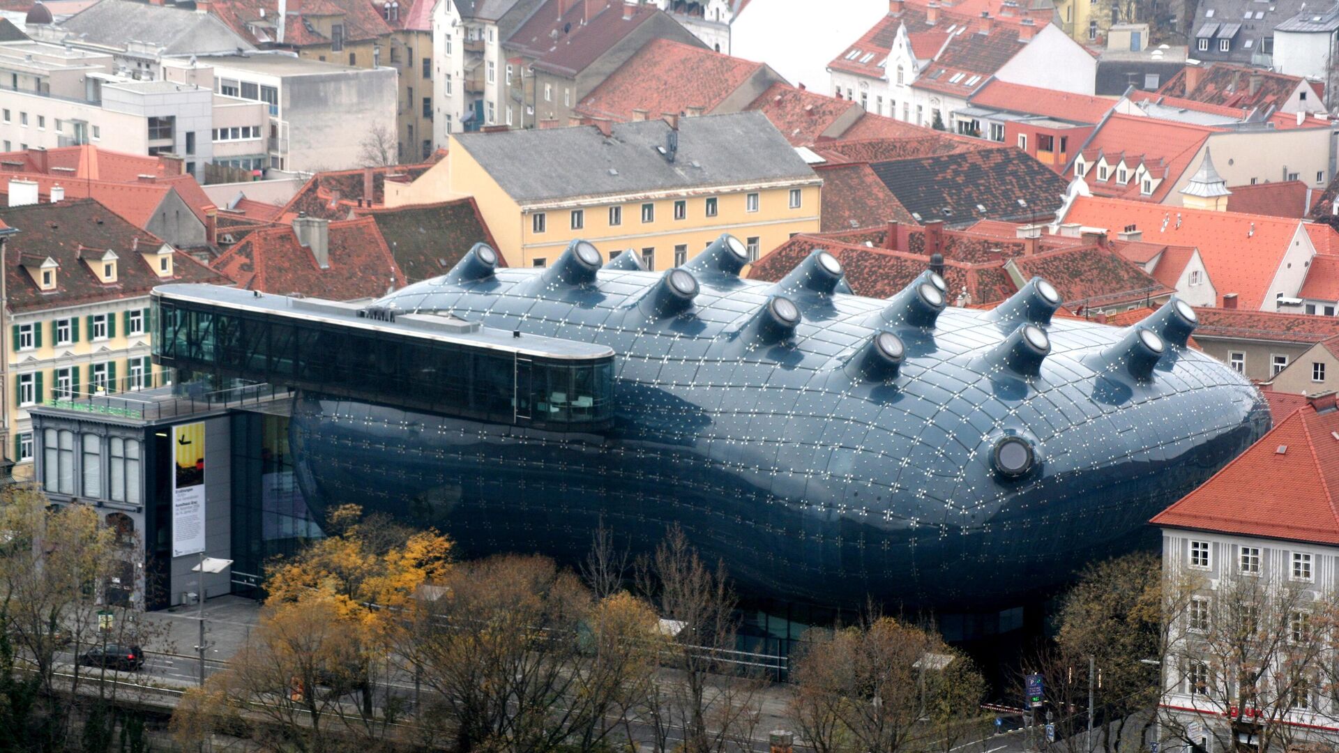 Галерея современного искусства Кунстхаус в Граце, Австрия  Открыта в рамках программы "Культурная столица Европы" в 2003 году. Концепт здания разработали лондонские архитекторы Питер Кук и Колин Фурнье. Здание построено в стиле "блоб", резко контрастирующем с окружающей застройкой, и напоминает своим видом сердце робота. - Sputnik Абхазия
