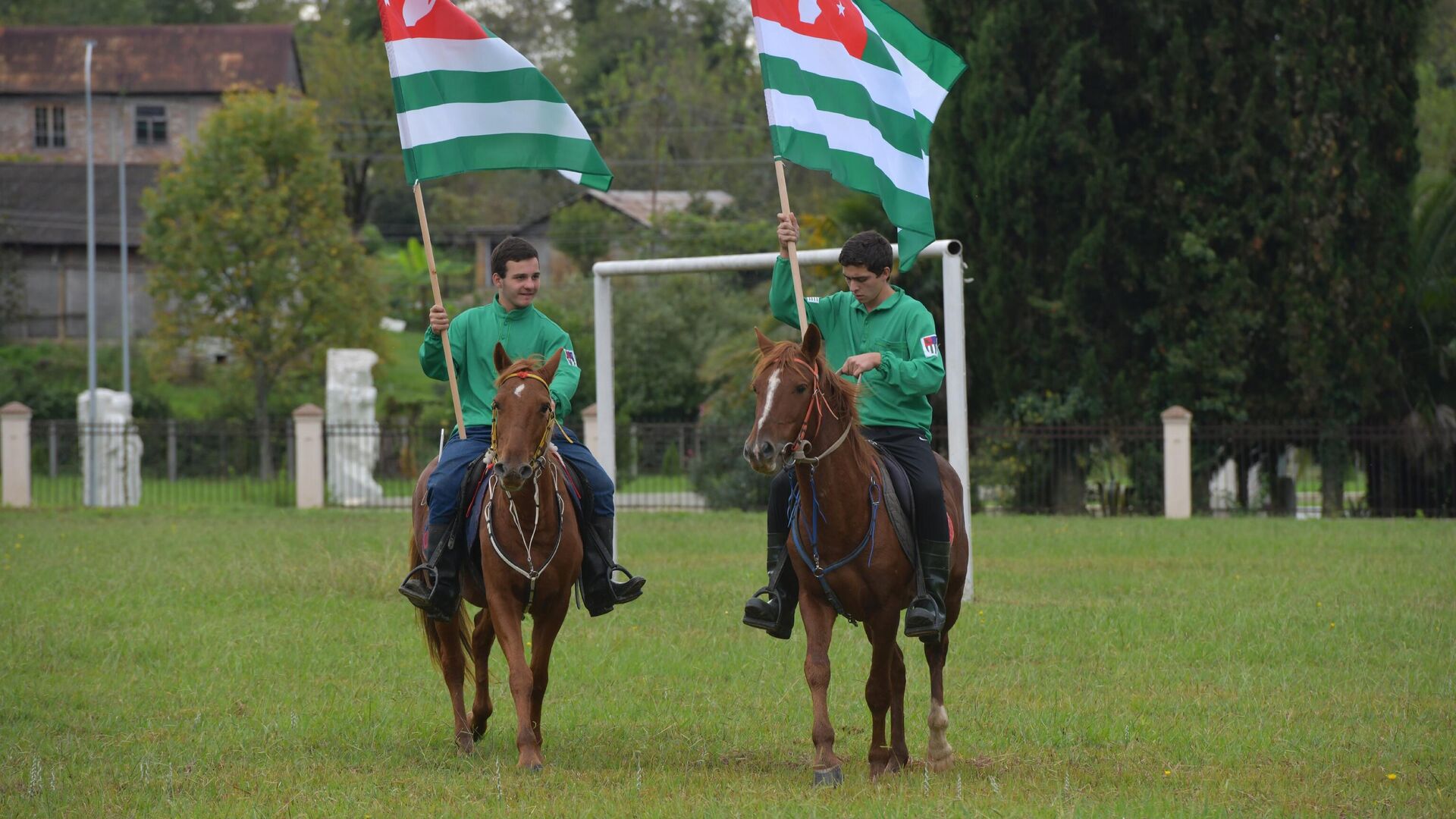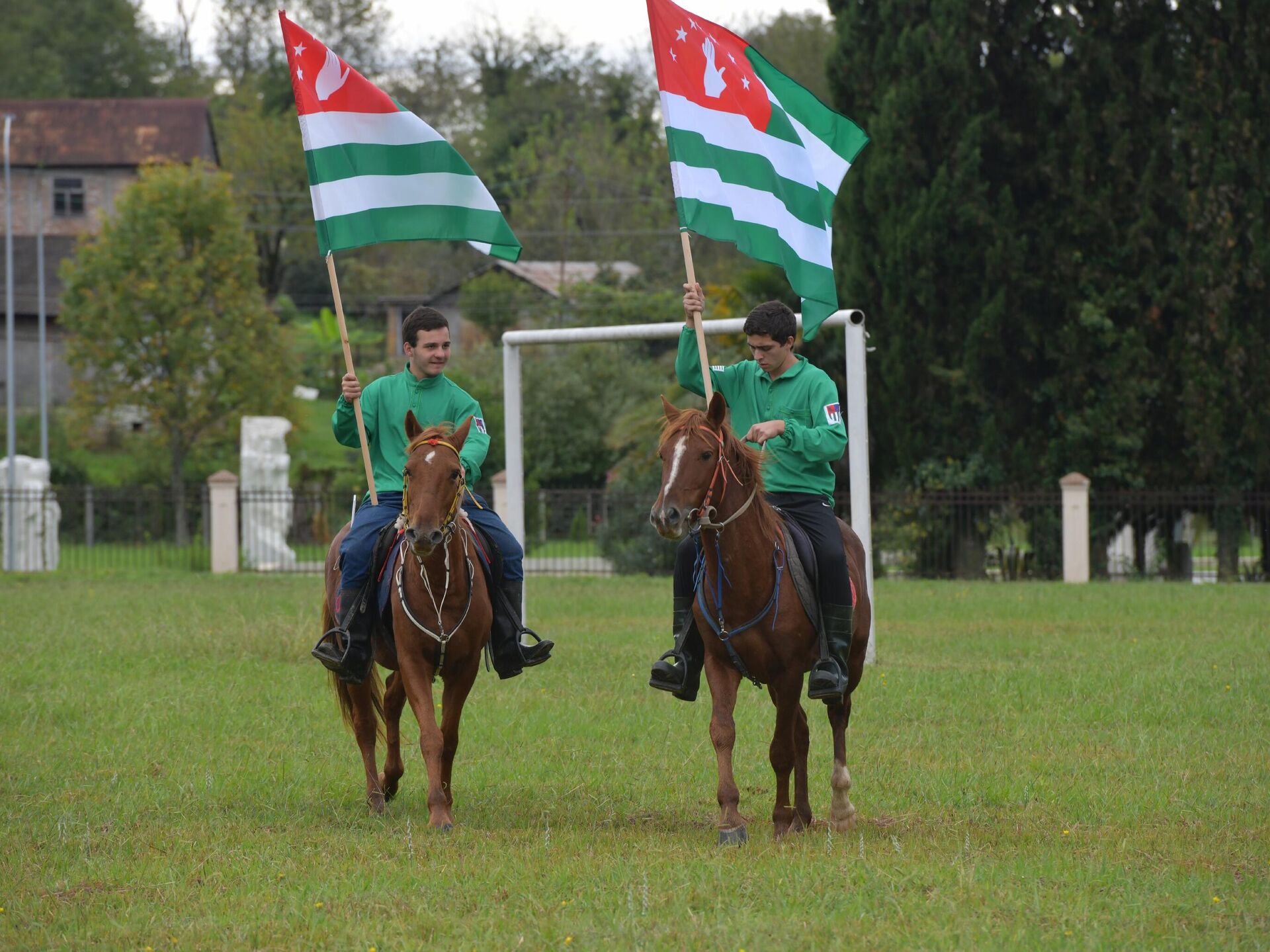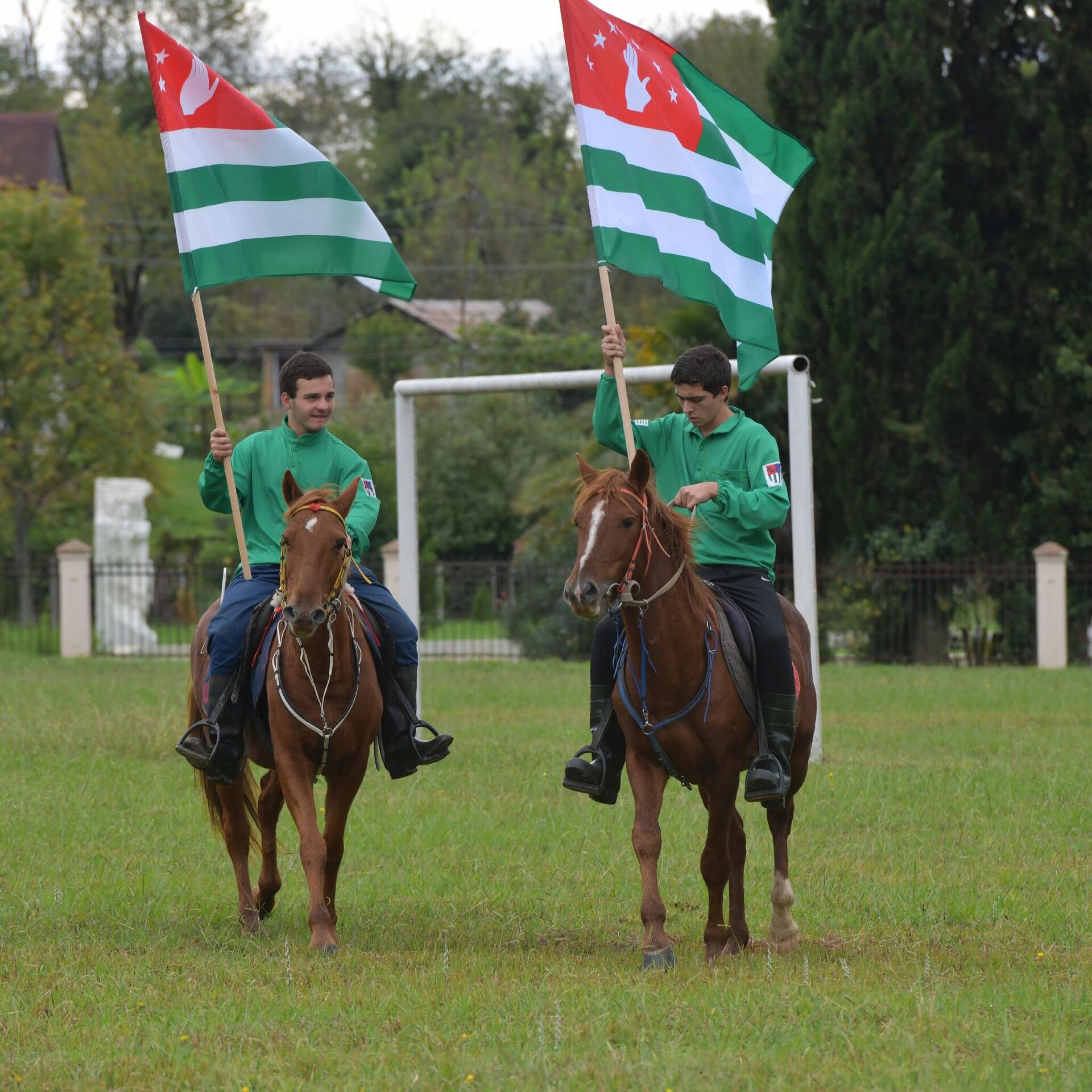 Праздник начался с шествия всадников, которые несли в руках абхазские флаги.
