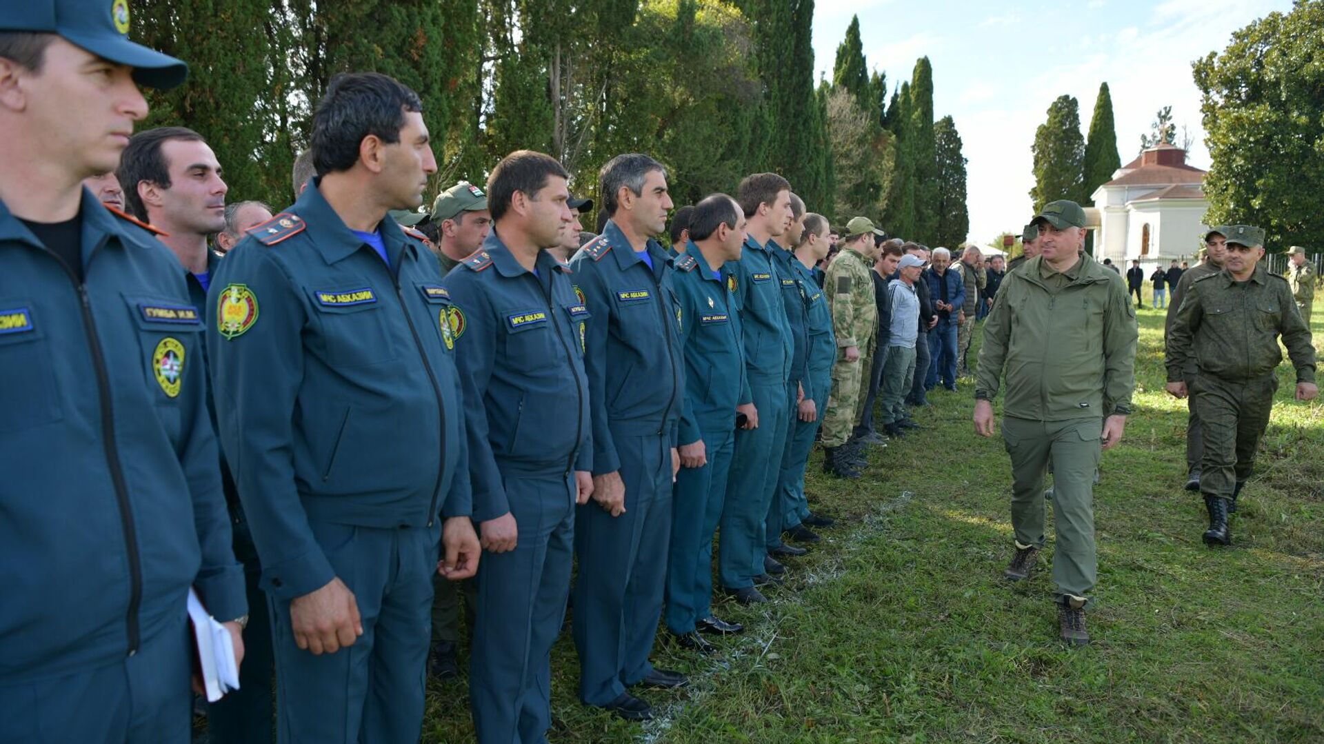 Главнокомандующий прибыл на место на вертолете МИ-8. Ранее он провел смотры в Ткуарчалском и Очамчырском районах.