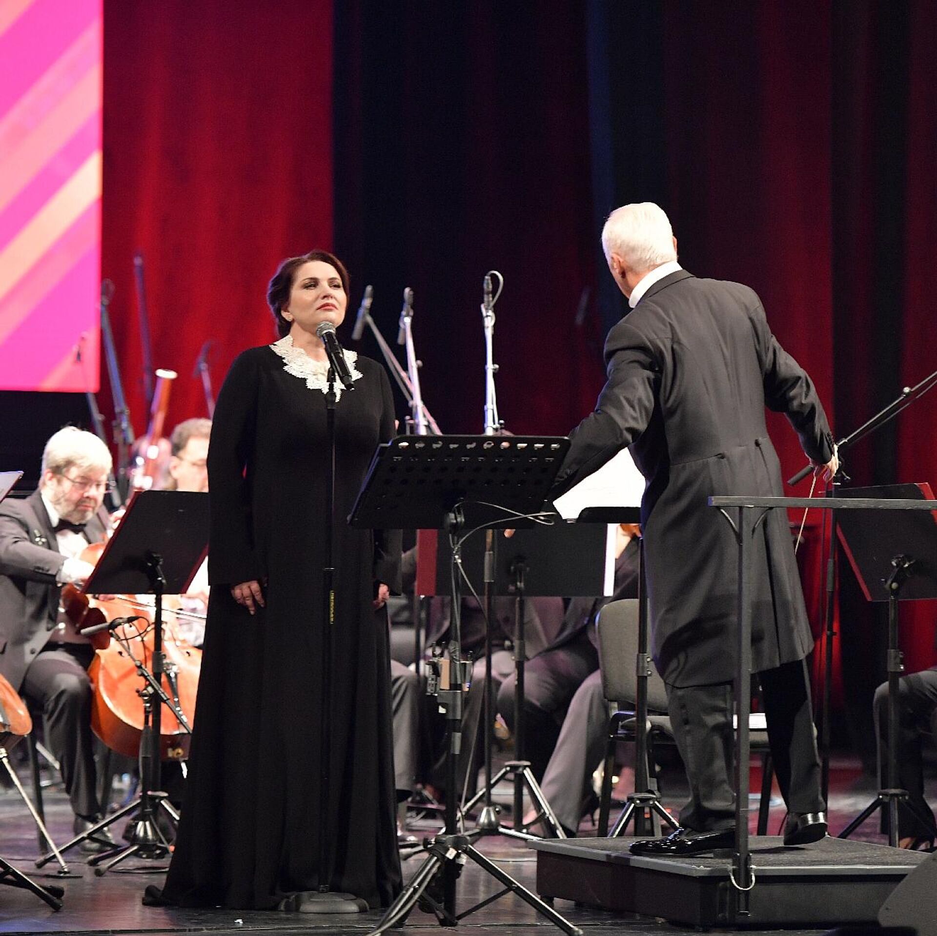 Выступление Народной артистки Абхазии и России Хиблы Герзмава сопровождал аккомпанемент Национального филармонического оркестра России под управлением Владимира Спивакова.