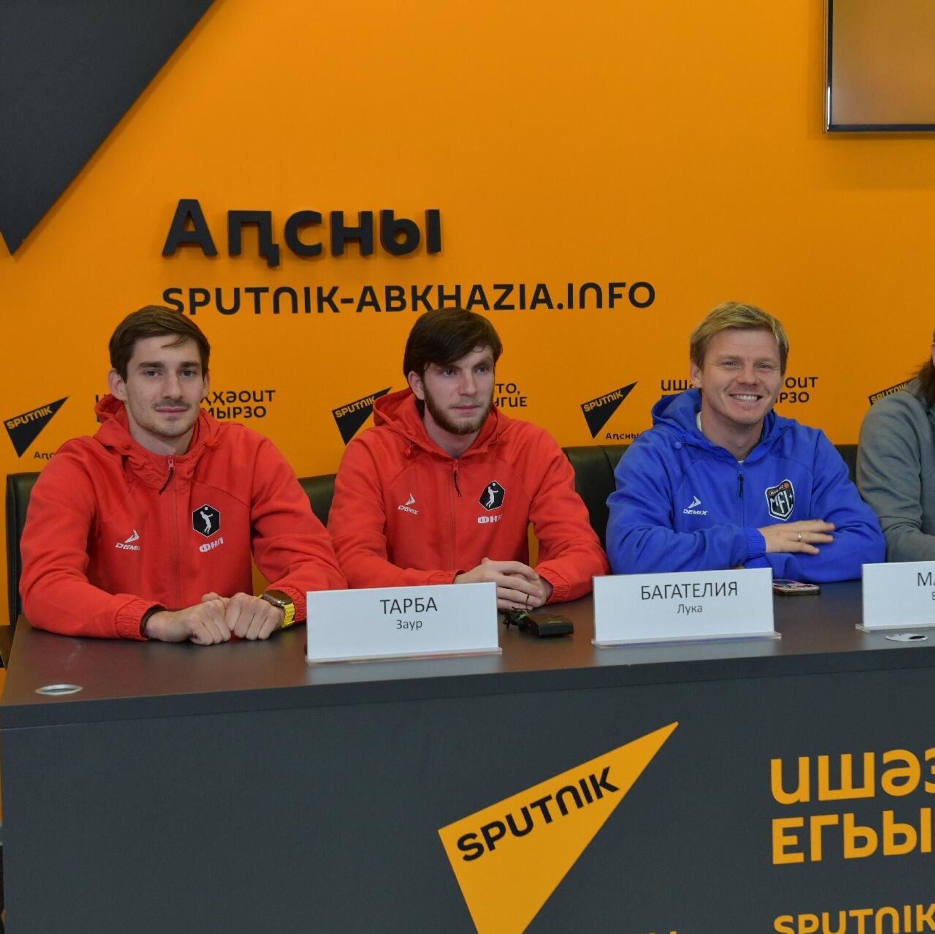 В ней приняли участие главный тренер сборной МФЛ Виталий Дьяков, игрок МФЛ Василий Маврин и двое футболистов из Абхазии, которые сыграют за ФНЛ – Заур Тарба и Лука Багателия.
