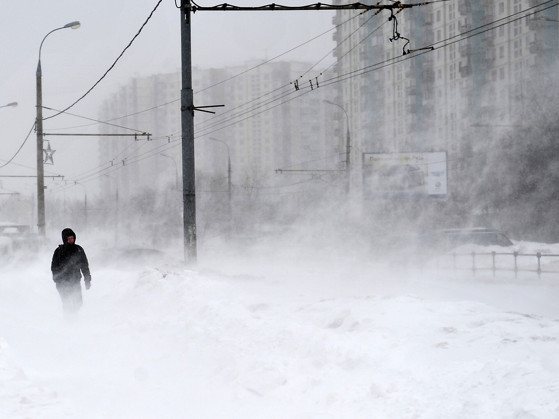 Дороги стоят в многокилометровых пробках, коммунальные службы не справляются, а аэропорт приостановил обслуживание рейсов до 15:00.