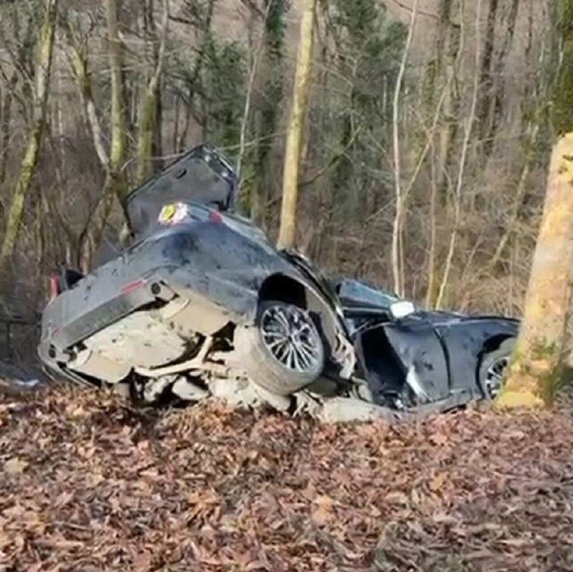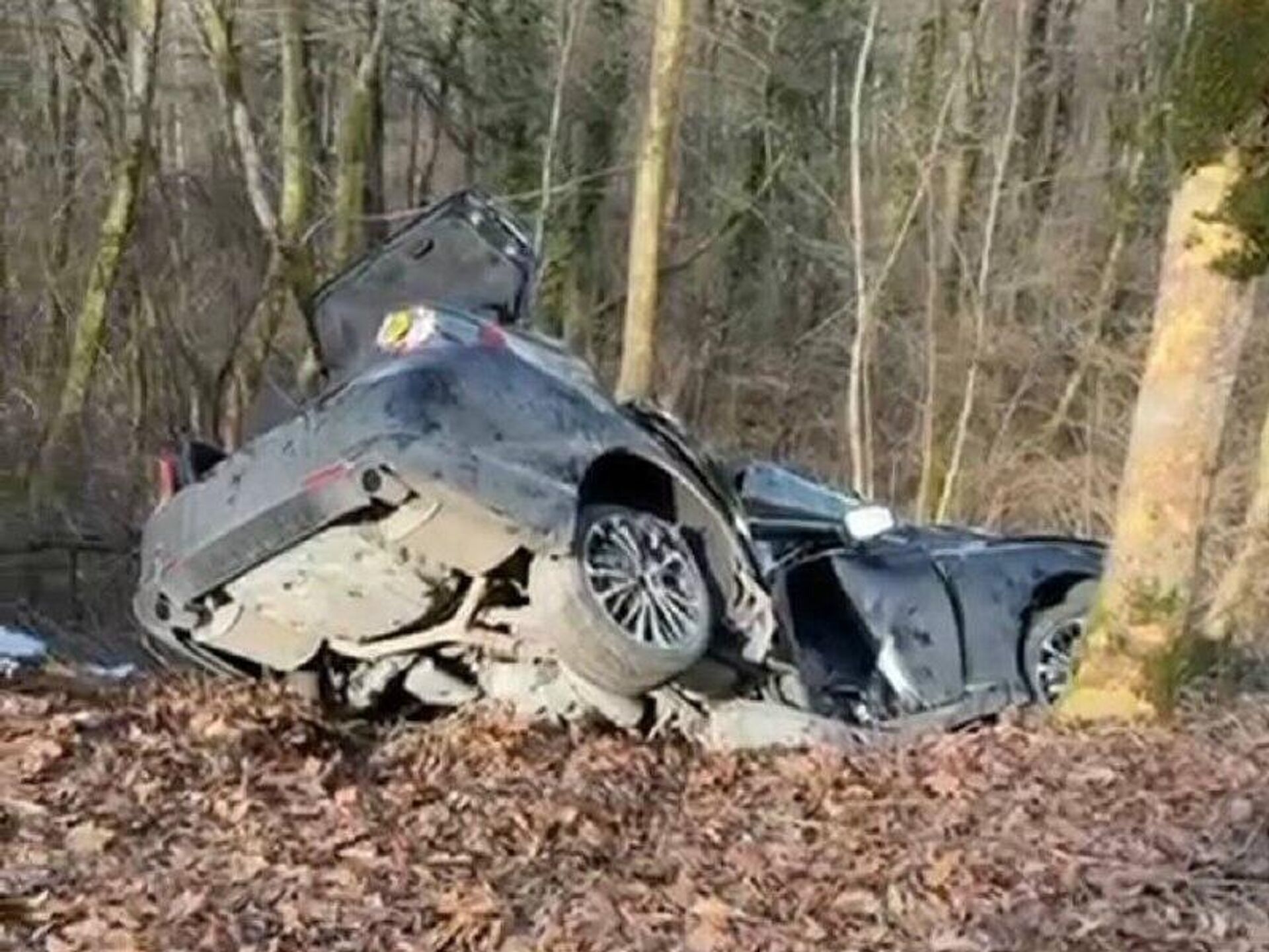 Водитель не справился с управлением, съехал с дороги и врезался в дерево. 15.01.2026, Sputnik Абхазия