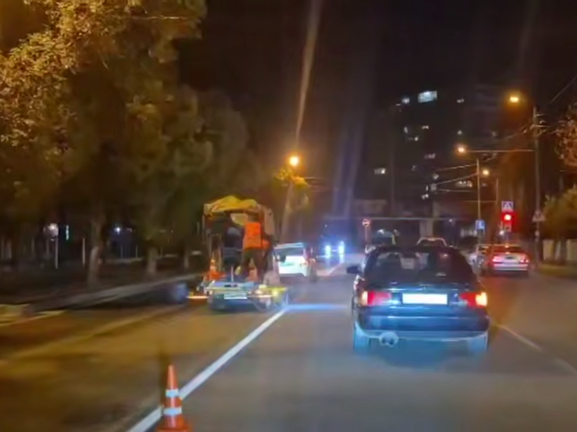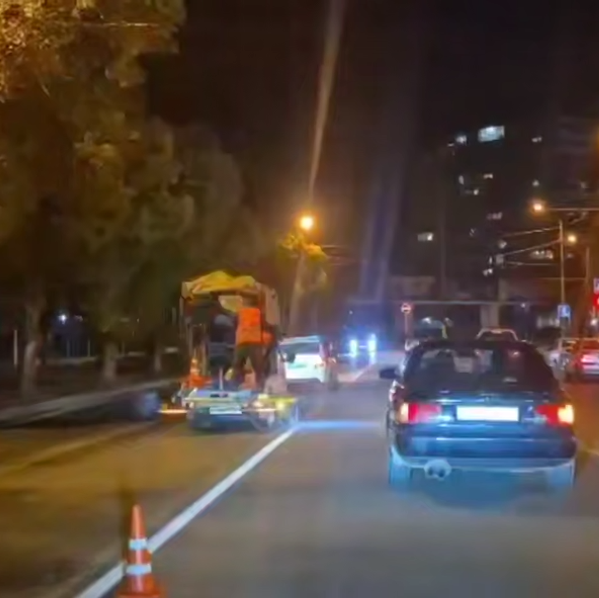 Сотрудники департамента организации безопасности дорожного движения проводят завершающий этап работ по ремонту троллейбусных линий и разметке улицы Акиртава.