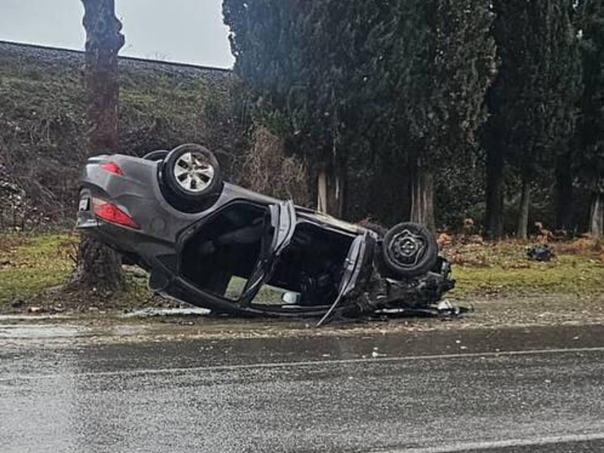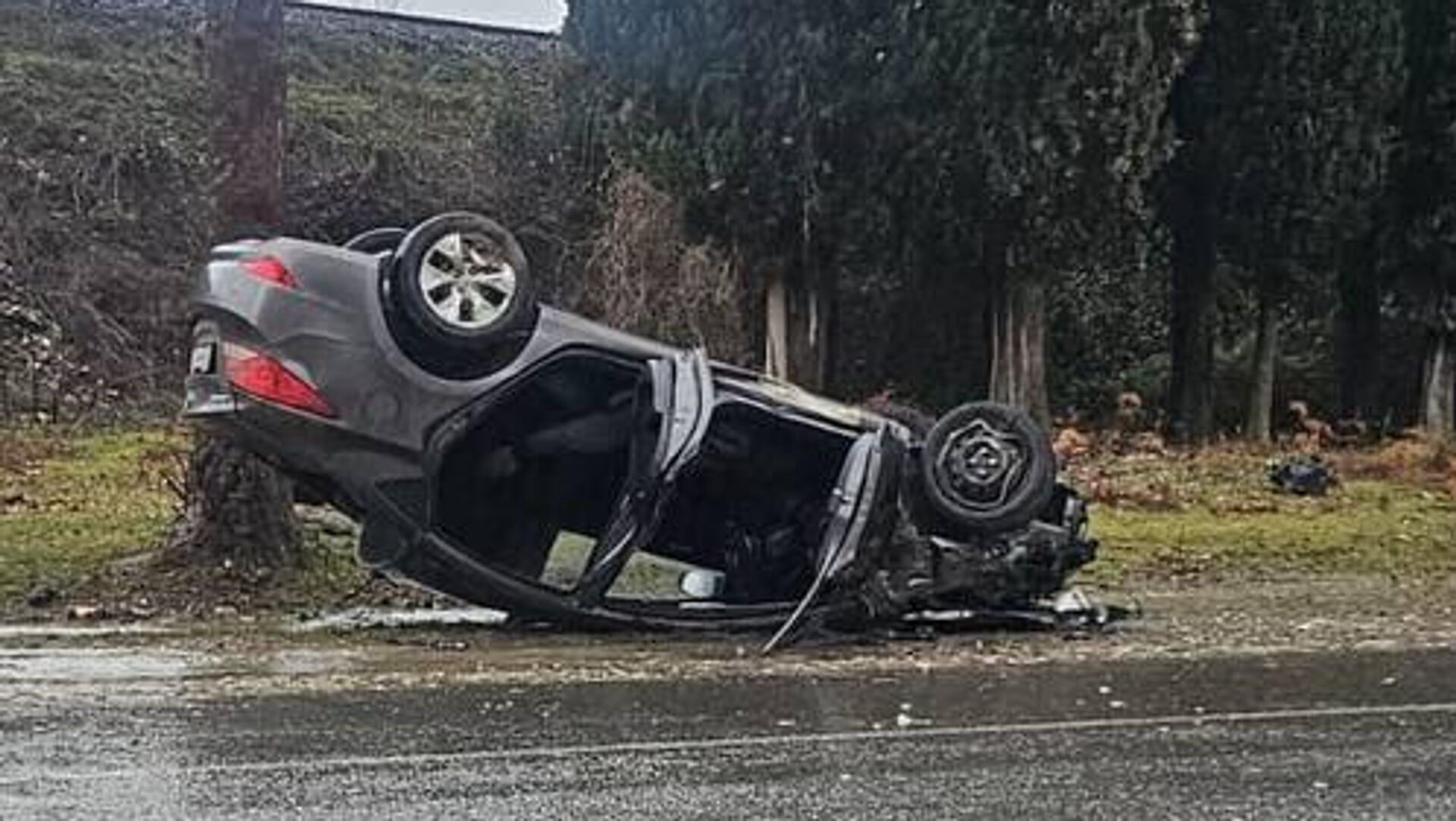 Авария произошла примерно в 17:00 вторника. Водитель Hyundai Solaris не справился с управлением на мокрой дороге и врезался в дерево. Он скончался на месте.