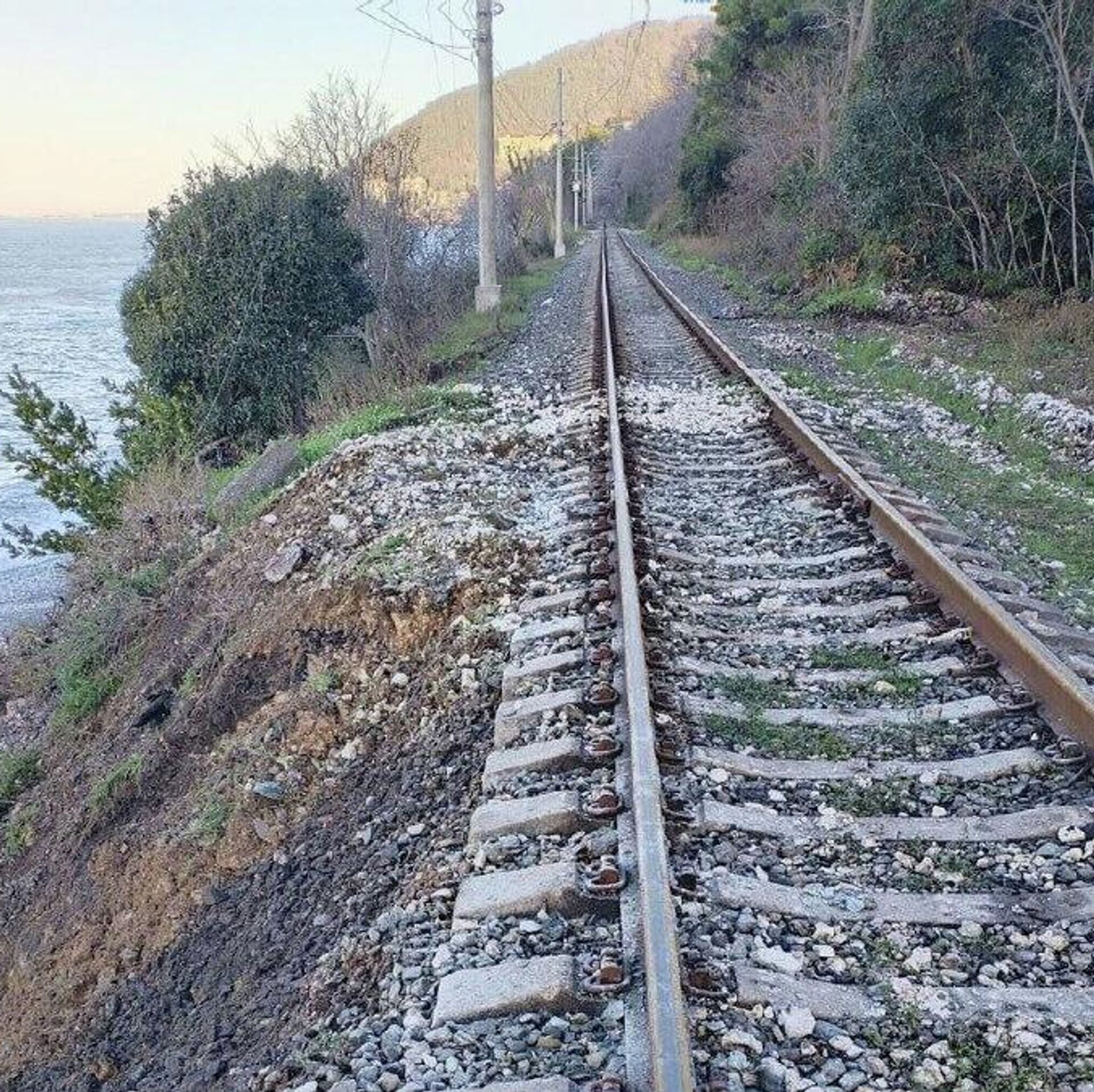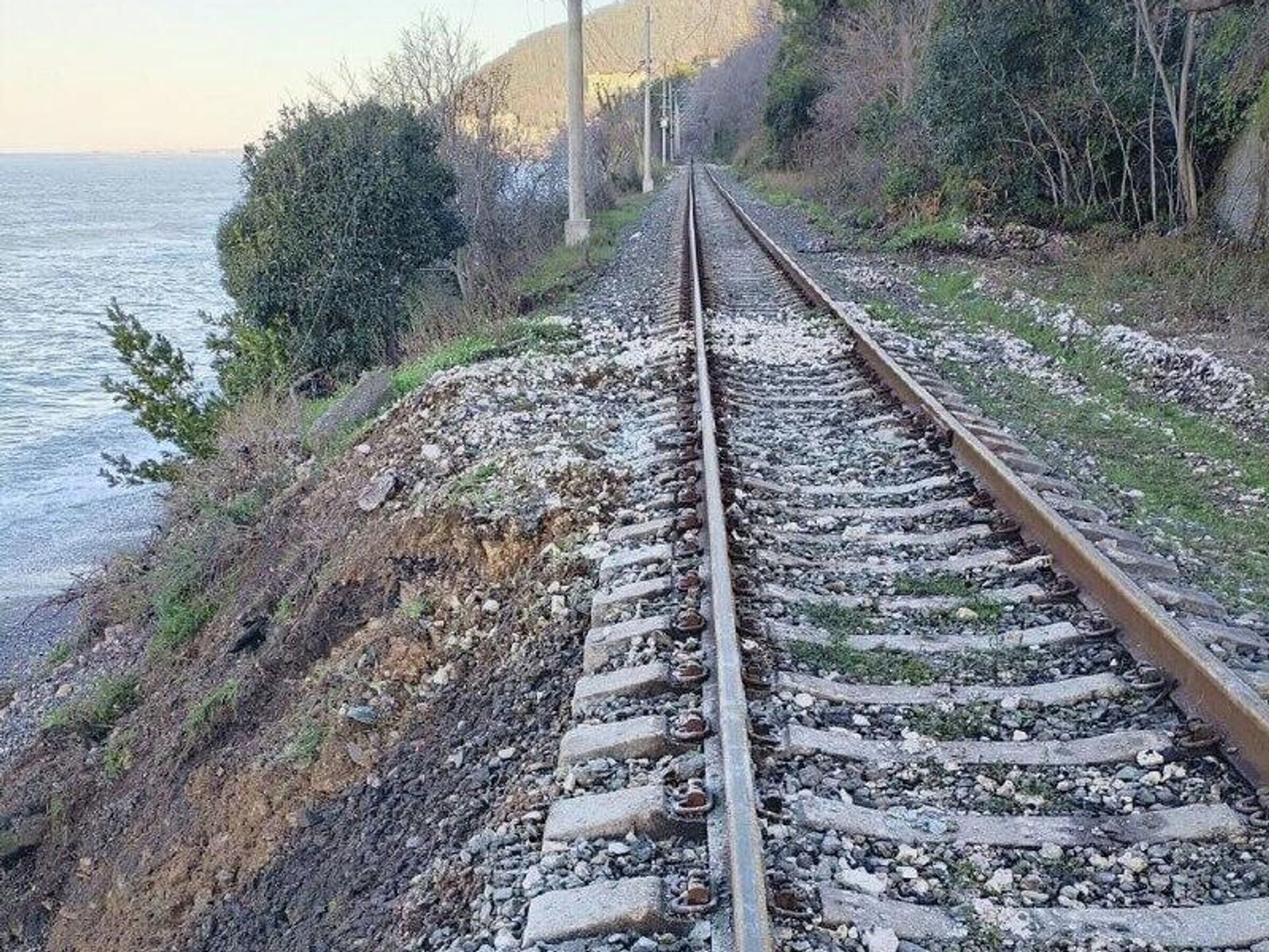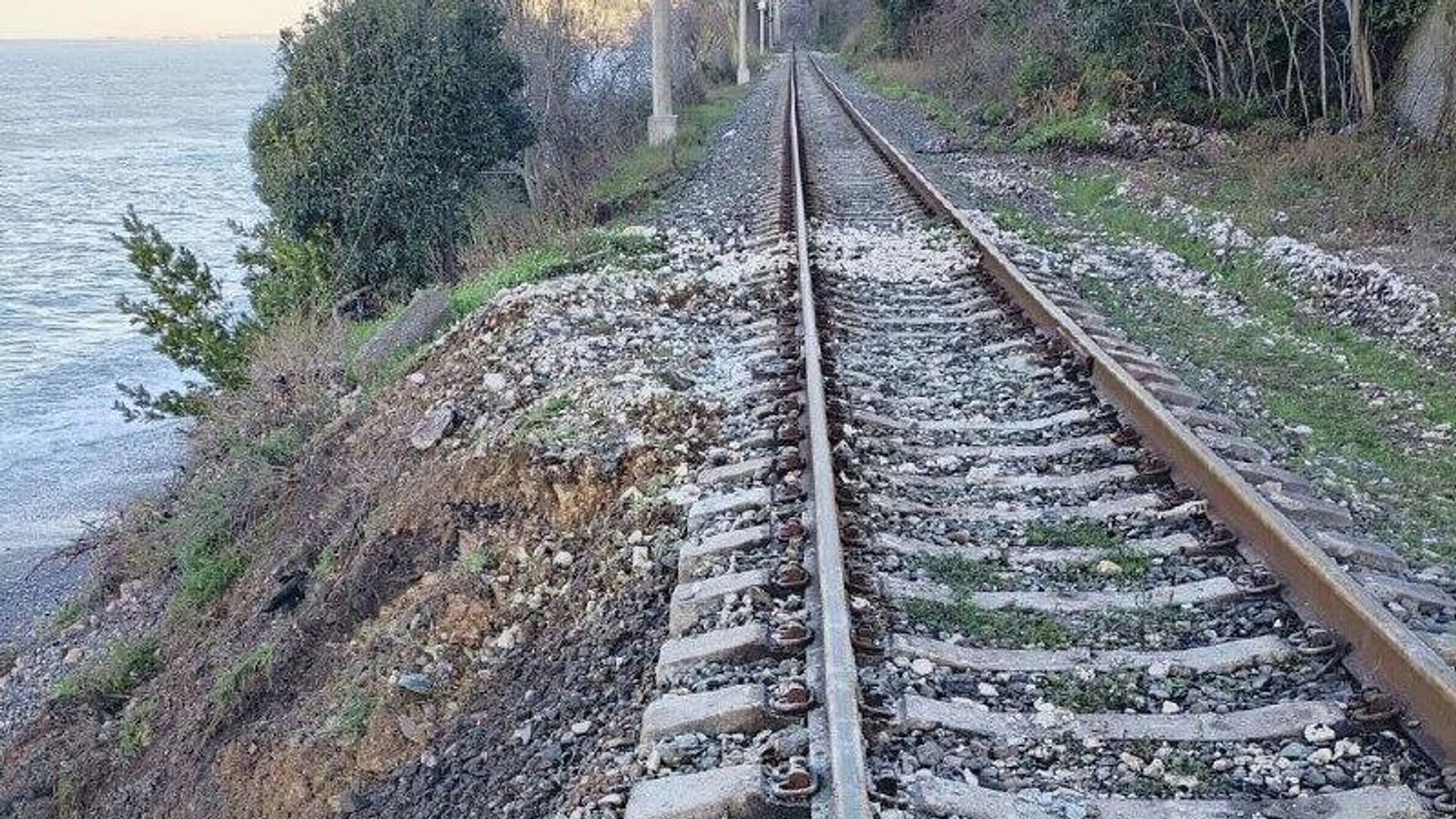 Ранее шторм подмыл железнодорожное полотно.