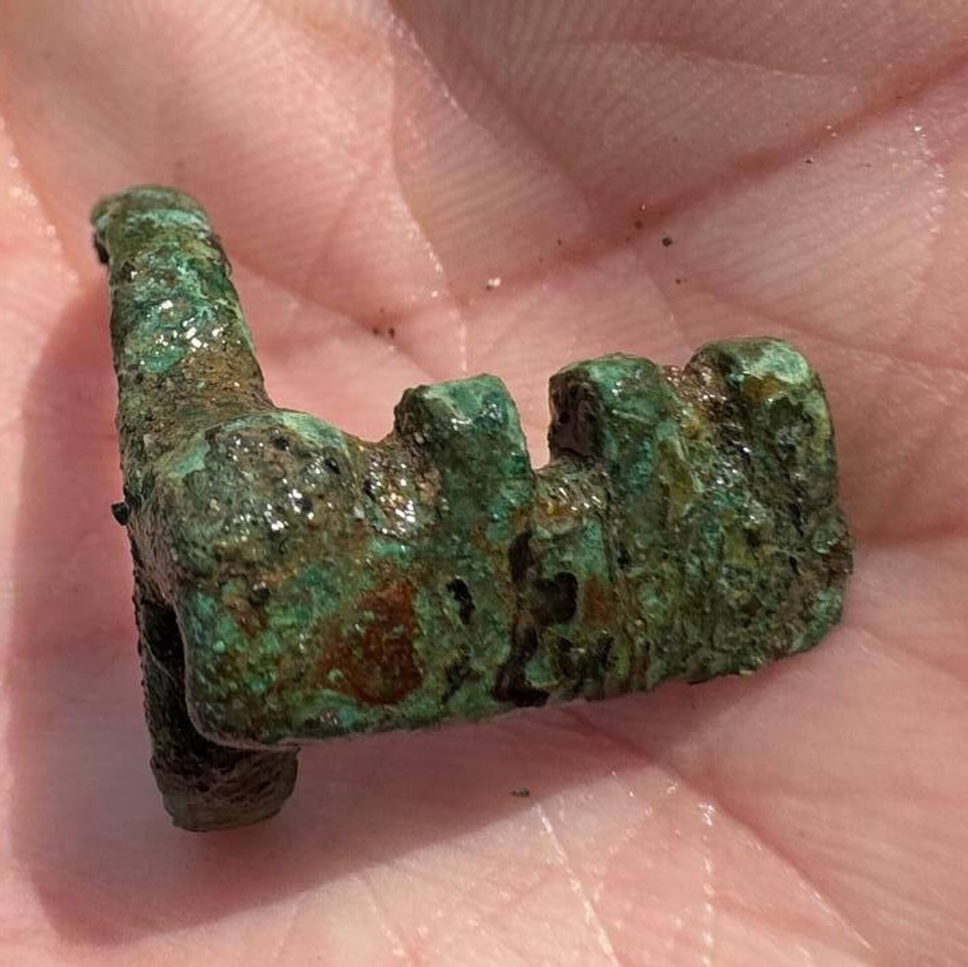 "Сначала подумали, что это кольцо. Потом археологи изучили и пришли к выводу, что это древнеримский ключ. Он надевался, видимо, на палец. Ключ медный, с благородной зеленой патиной", — отметил Инал-ипа.