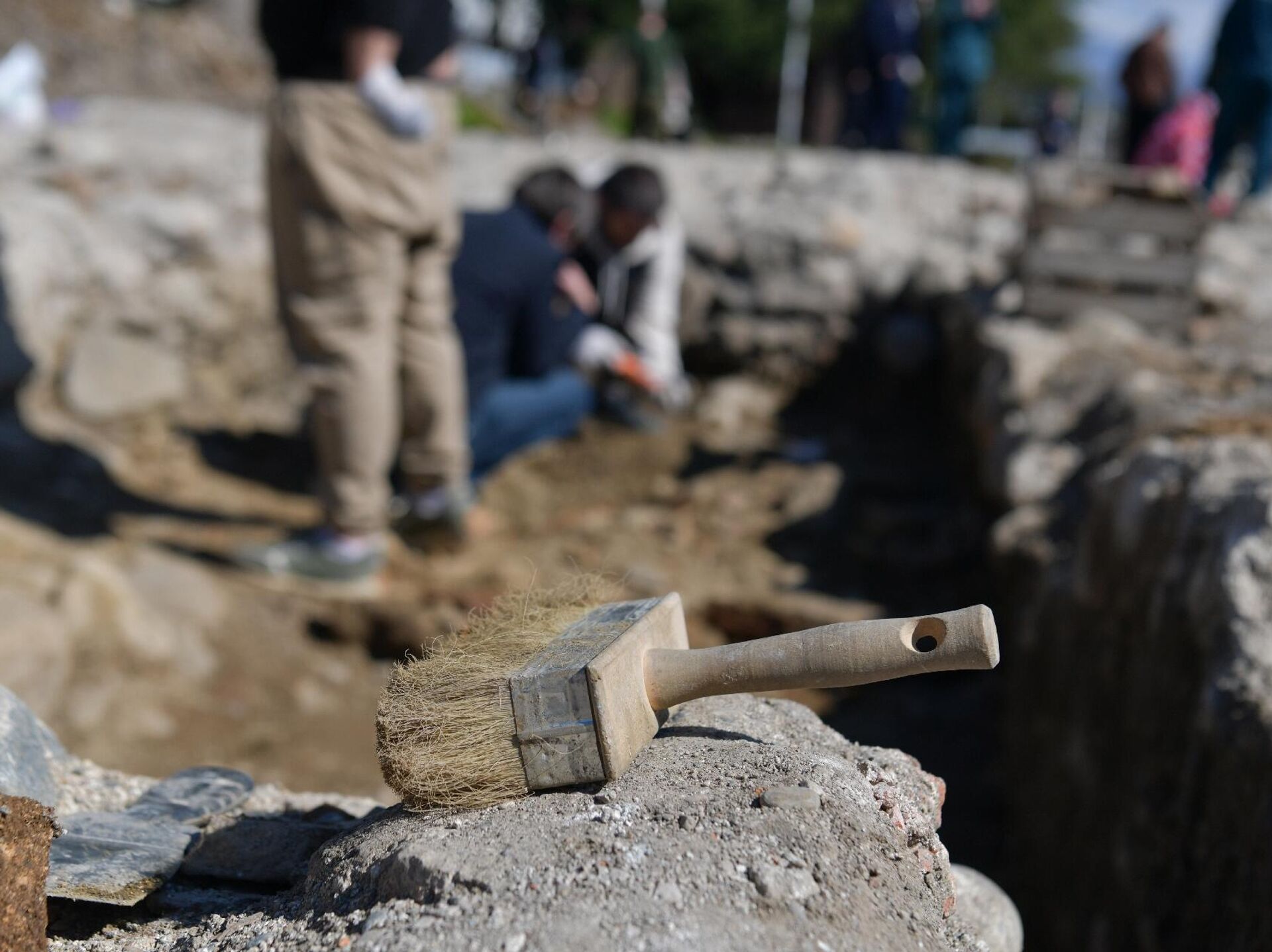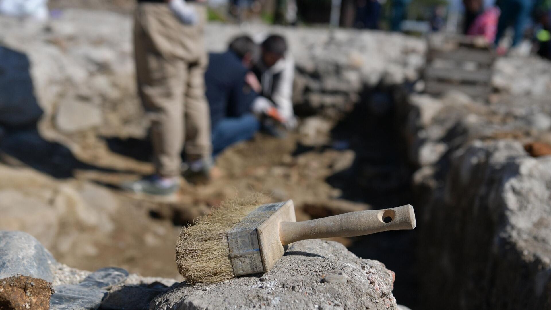 Раскопки сооружений античности в районе нынешнего кафе "Пингвин" начались в феврале этого года. В них принимают участие и волонтеры.