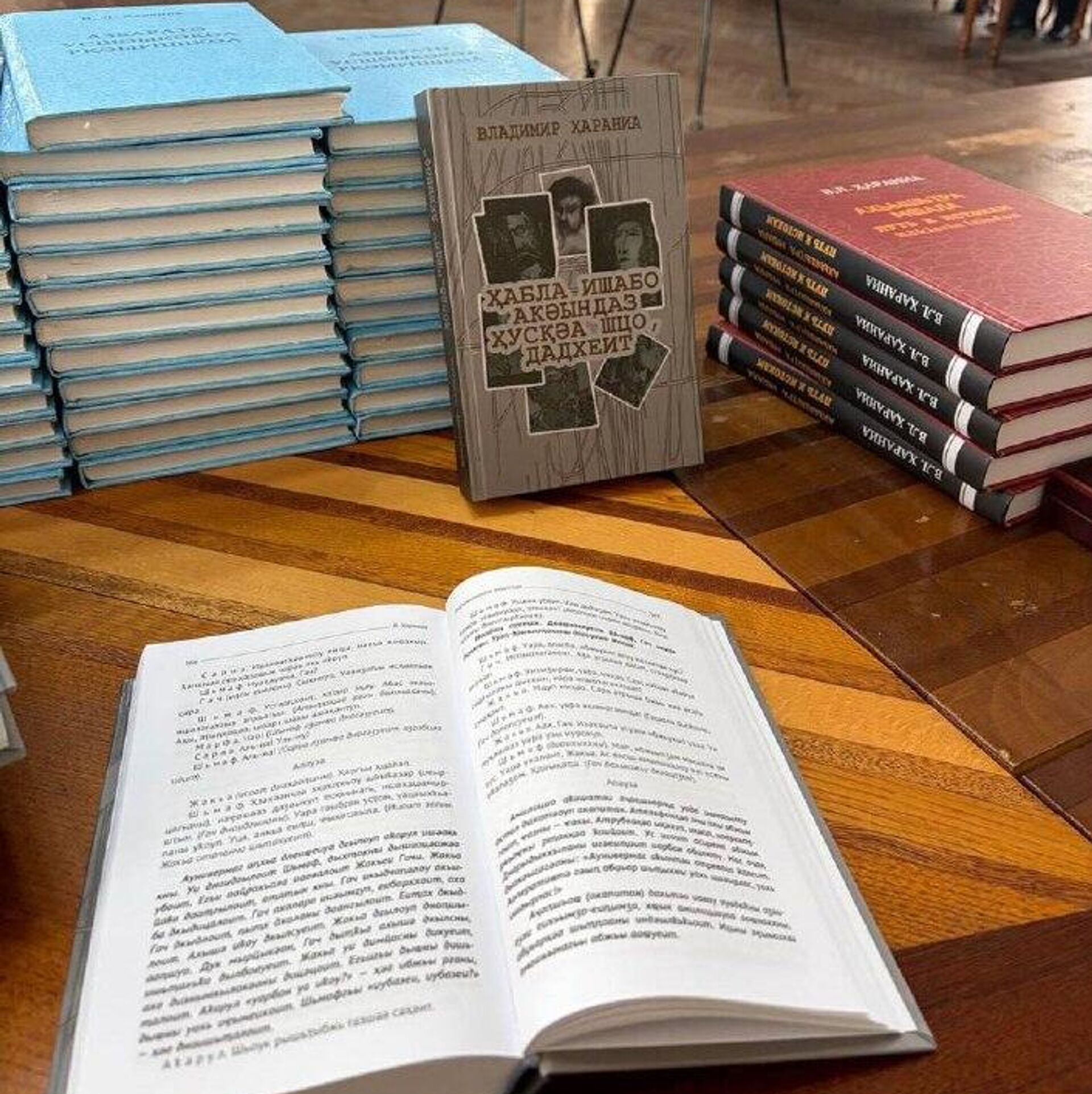 Всего Харания издал 11 книг, в том числе издание, которое он посвятил сыну, погибшему в Отечественной войне народа Абхазии. Все книги сегодня представили на мероприятии, после встречи автор раздал их присутствовавшим.