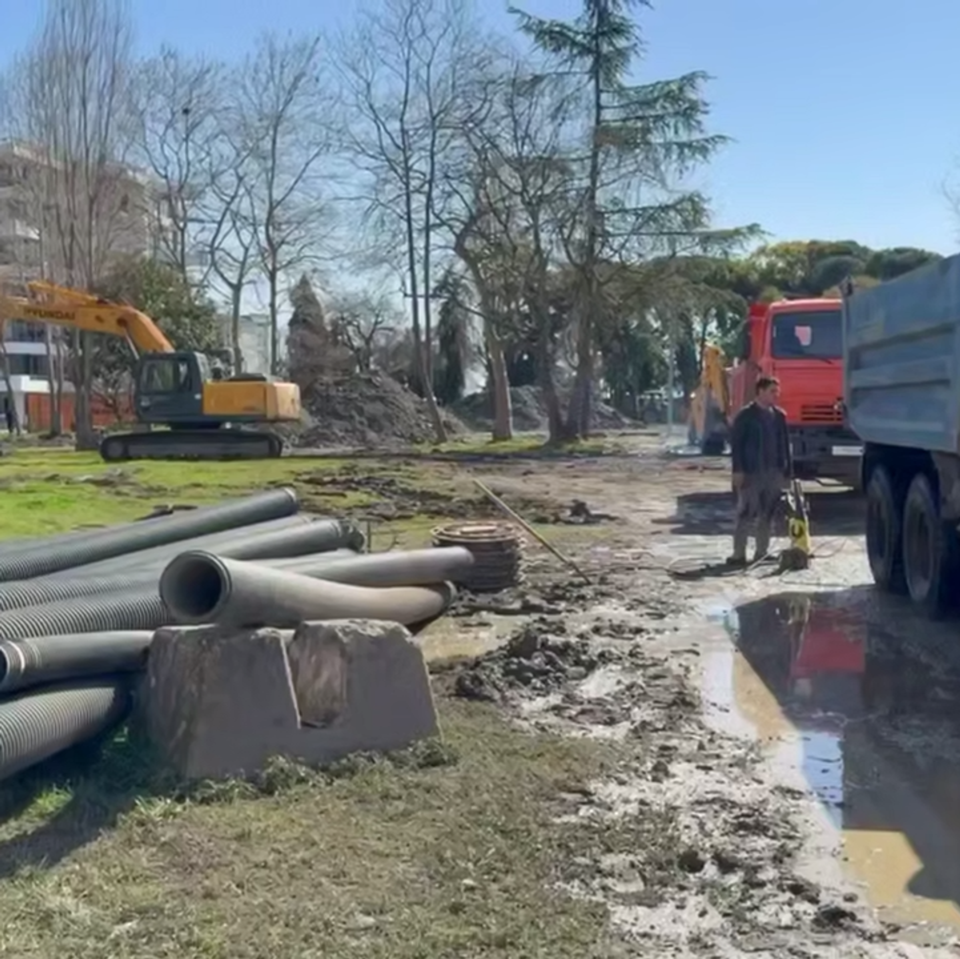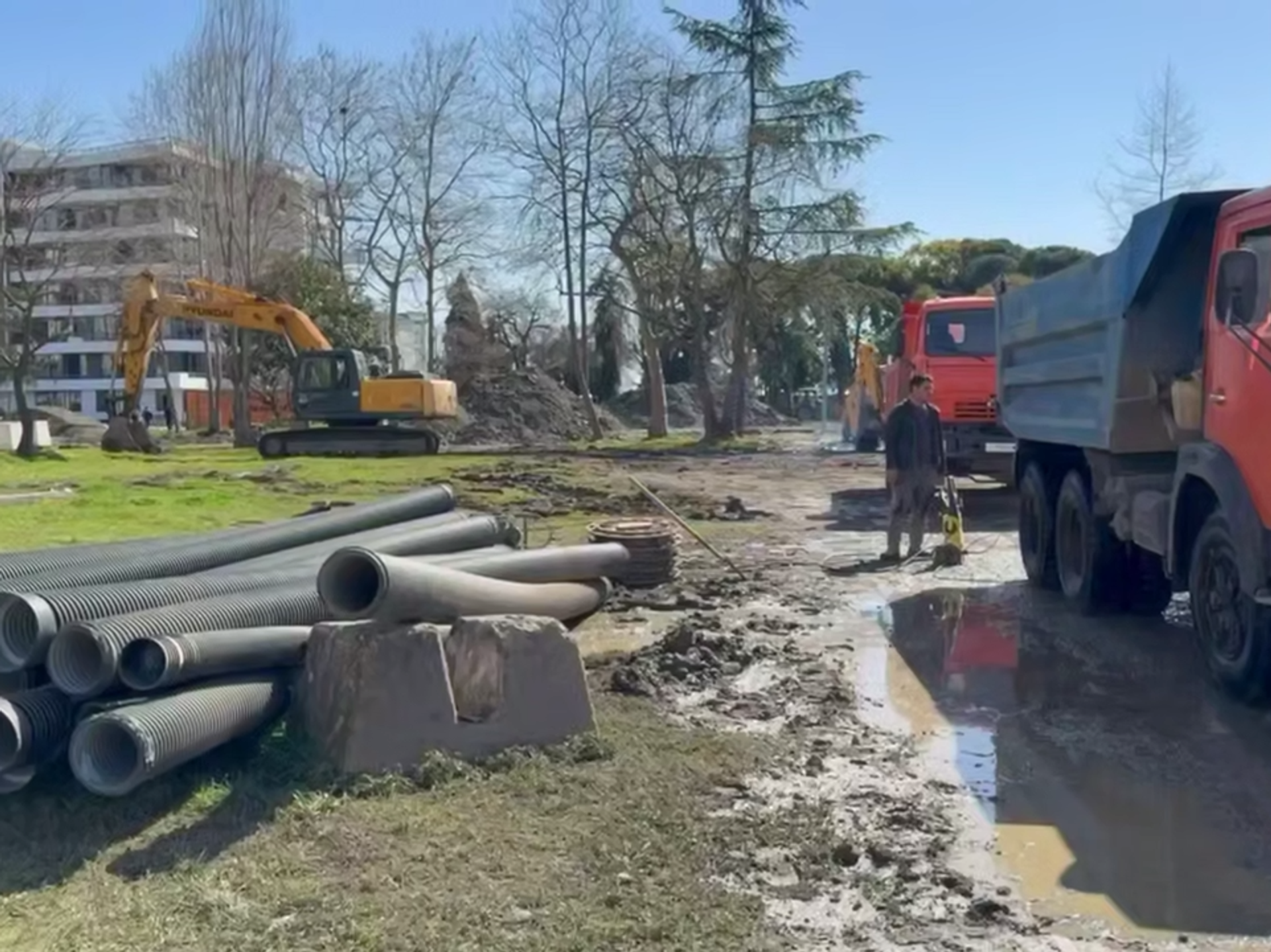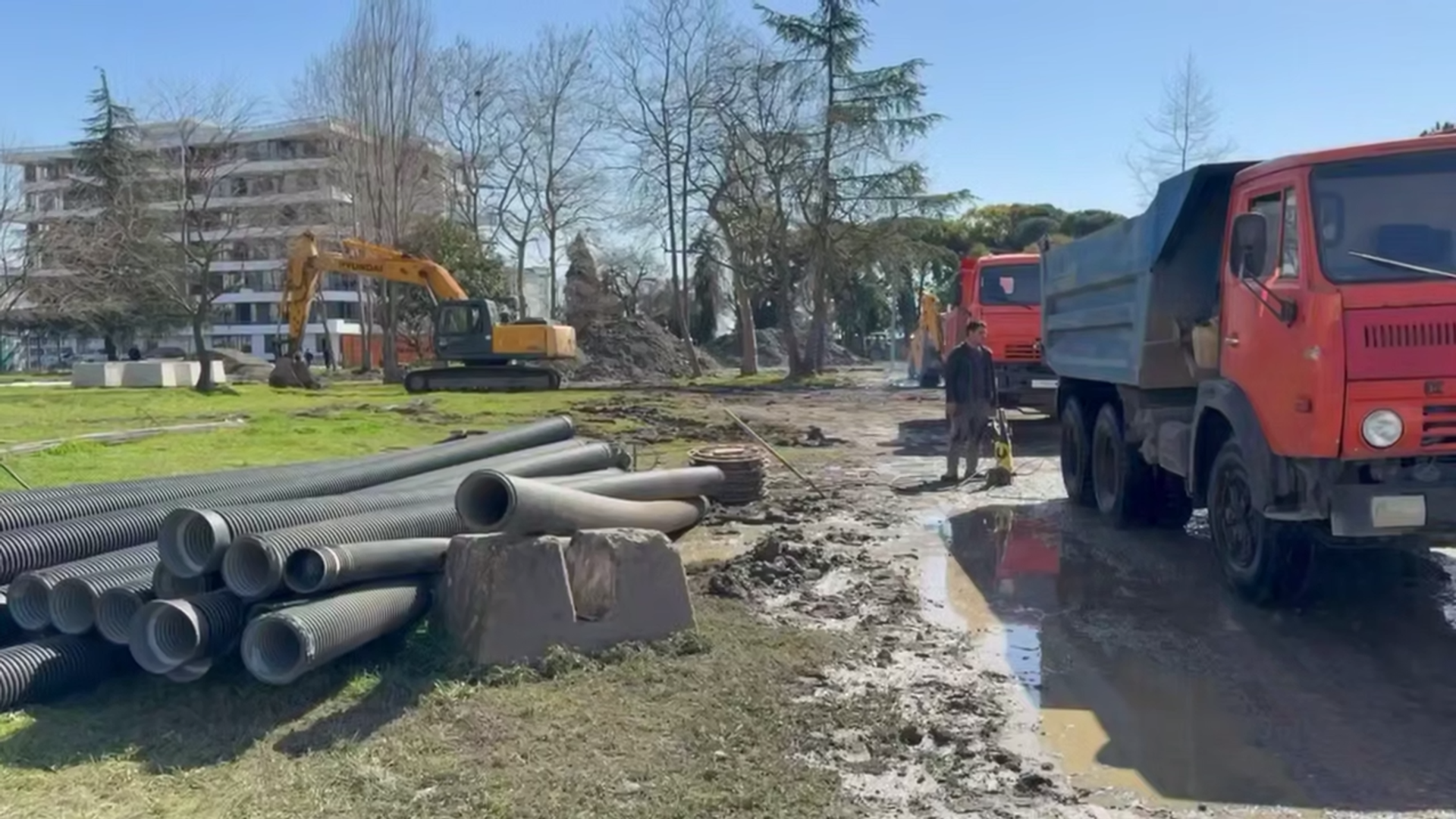"Сейчас будут прокладывать канализацию. Будут сделаны колодцы, а также проложена дренажная трасса. Все эти работы выполняют три смежные организации", — отметил Какуридзе.