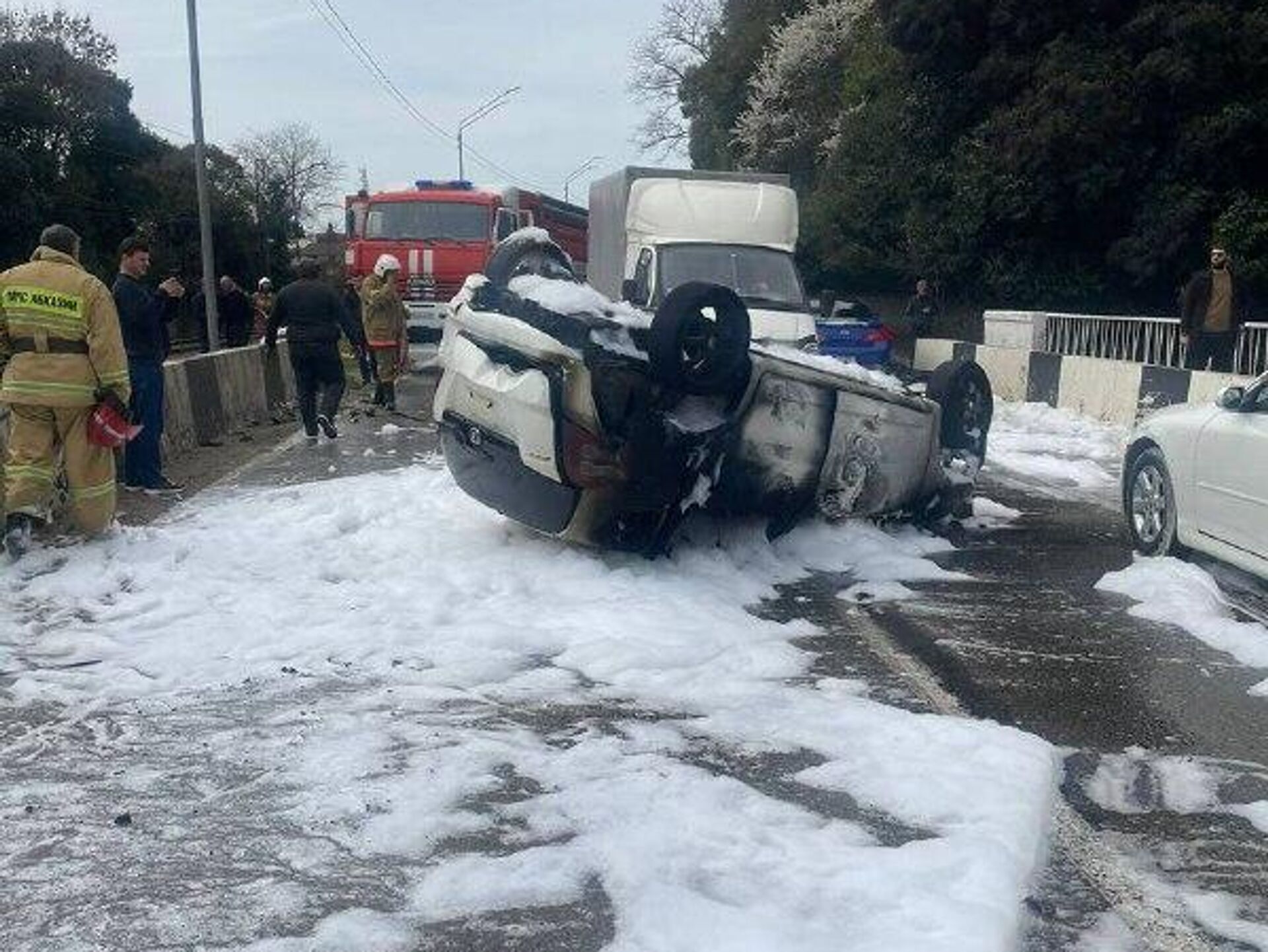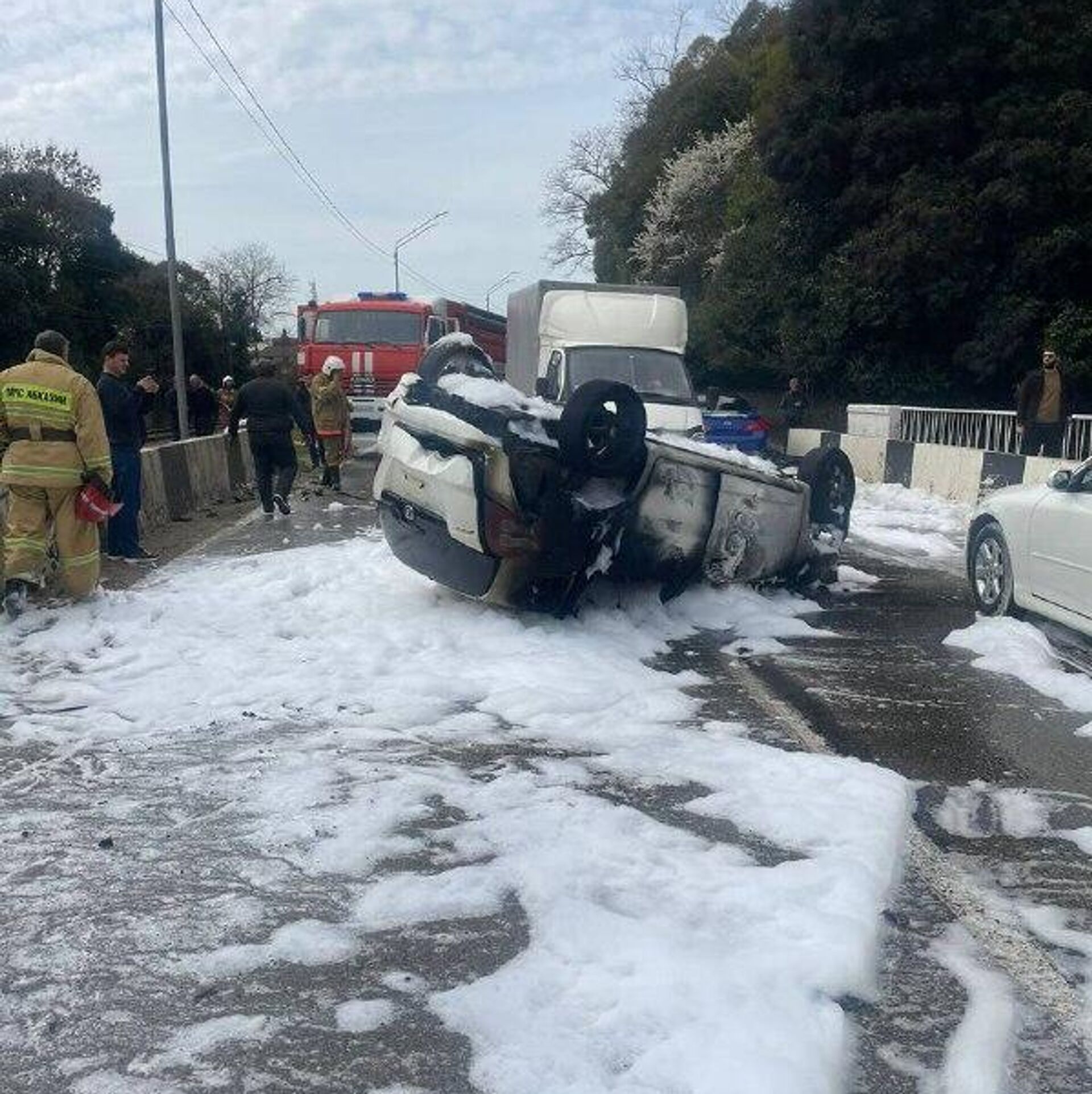 СУХУМ, 15 мар - Sputnik. Автомобиль перевернулся на мосту в Гудауте, сообщил Sputnik начальник районного ГАИ Анзор Базба. 15.03.2026, Sputnik Абхазия