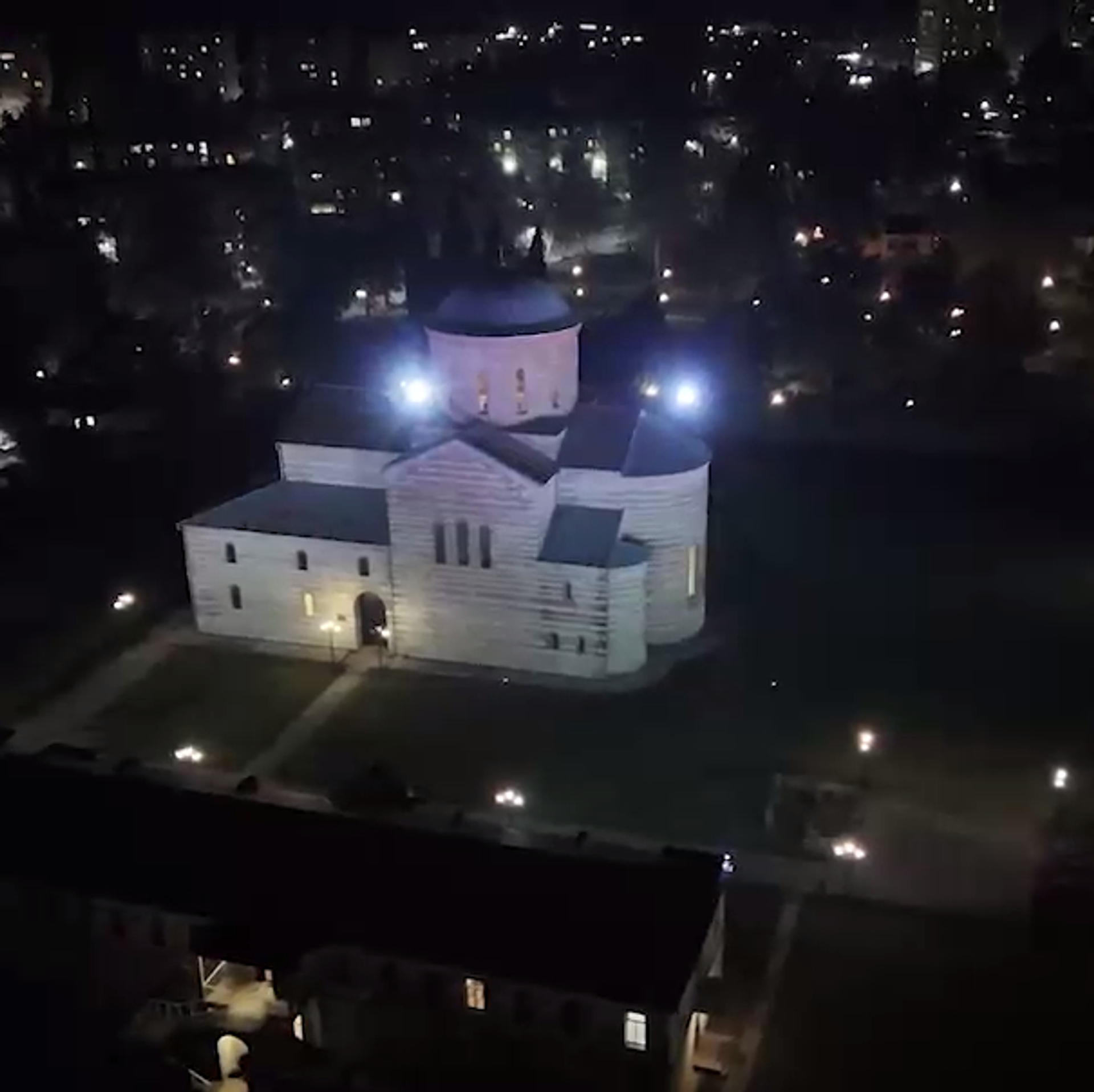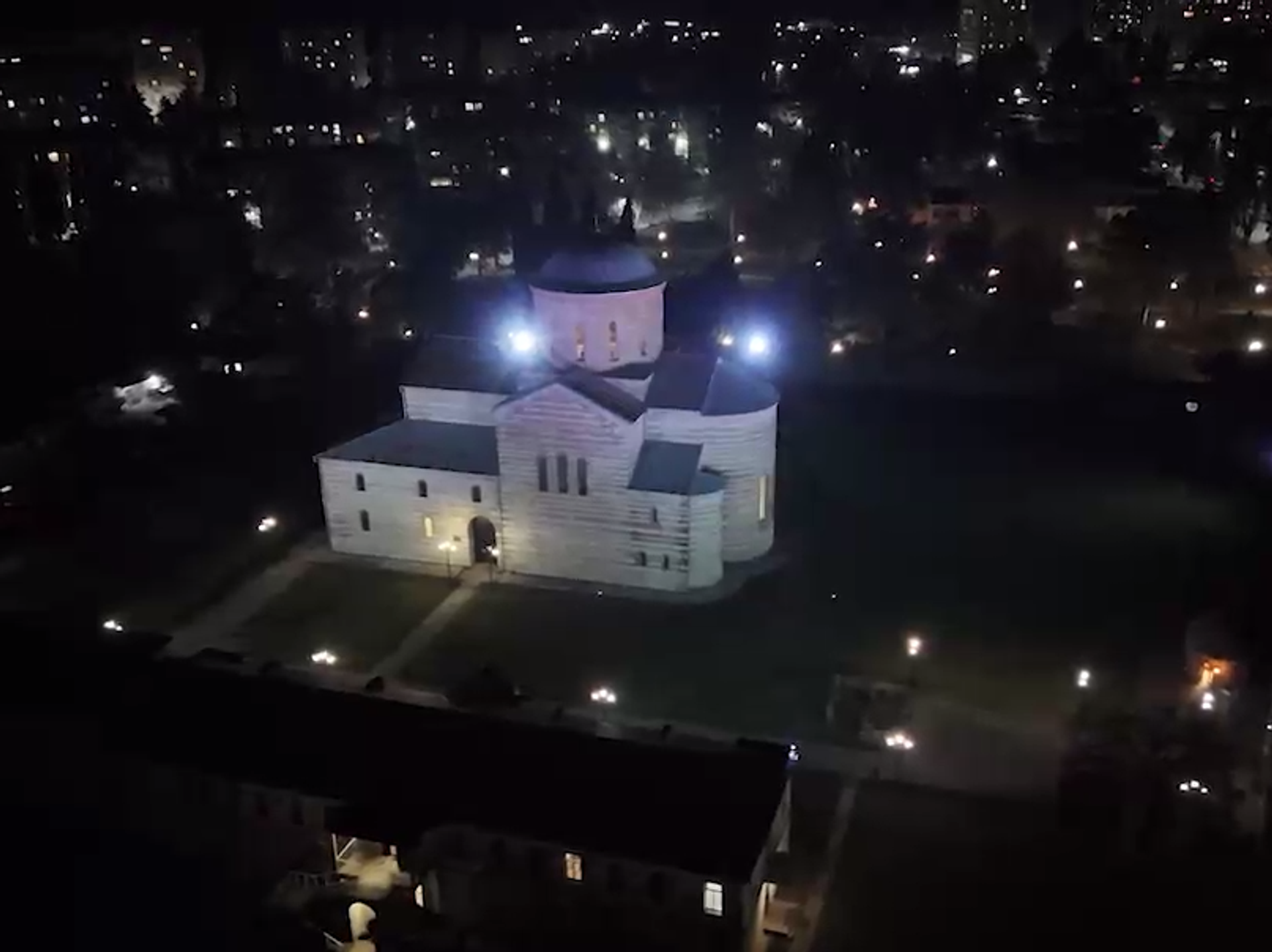 Художественную подсветку установили на фасаде Пицундского храма