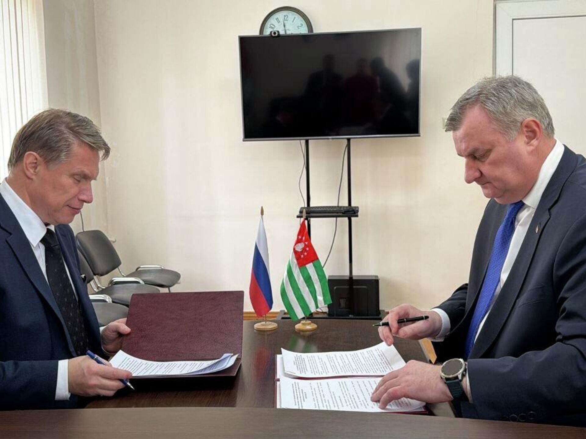 СУХУМ, 4 апр - Sputnik. Меморандум о взаимопонимании подписали Эдуард Бутба и Михаил Мурашко,